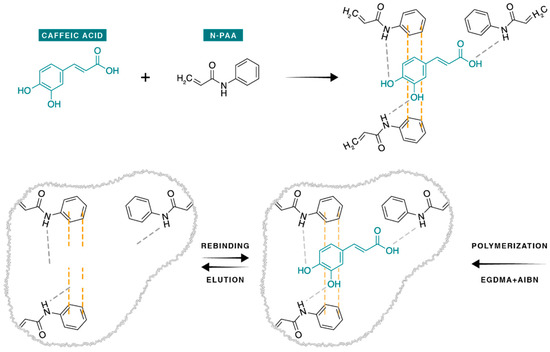 - Miura, C.; Matsunaga, H.; Haginaka, J. Molecularly Imprinted Polymer for Caffeic Acid by Precipitation Polymerization and Its Application to Extraction of Caffeic Acid and Chlorogenic Acid from Eucommia Ulmodies Leaves. J. Pharm. Biomed. Anal. 2016, 127, 32–38. [Google Scholar] [CrossRef] [PubMed]