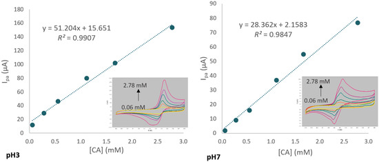 2.4. Effect of pH on Electrochemical Detection of CA in Hydroalcoholic Medium