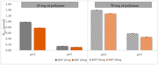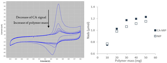 2.5. Rebinding Experiments of CA Using MIP and NIP in Hydroalcoholic Medium: Effect of pH and Polymer Mass