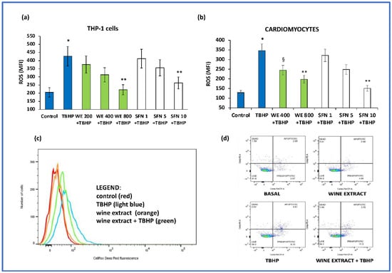 3.3. Polyphenol Content in Red Wine and Effect of Wine Extract and Sulforaphane on TBHP-Induced ROS Generation