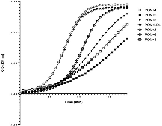 There is considerable evidence that the antioxidant activity of HDL is largely related to its associated antioxidant enzyme paraoxonase 1 (PON1). Epidemiological evidence has shown that low PON1 activity is associated with an increased risk of cardiovascular events [7,8]. PON1 has many activities—hydrolysis of organophosphate triesters, aryl esters, cyclic carbamates, glucuronides, estrogen esters, and thiolactones—while its “natural” substrates are assumed to be lactones [9,10]. The aromatic nature of amino acids in the active site of PON1 could explain why the enzyme prefers lipophilic substrates [11]. All three members of the PON family (PON1, PON2, and PON3) share this property of being lactonases.