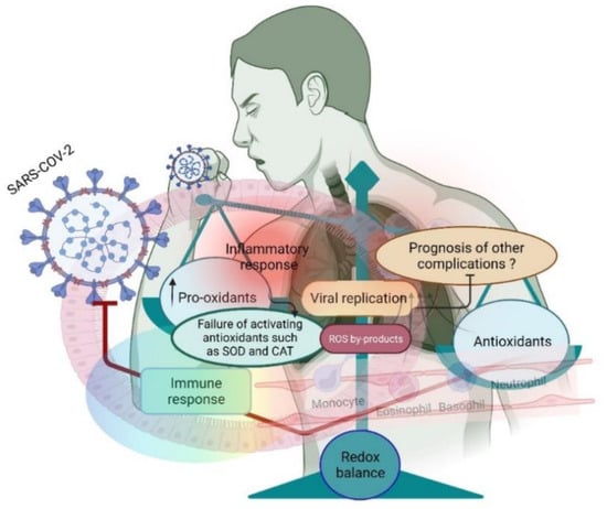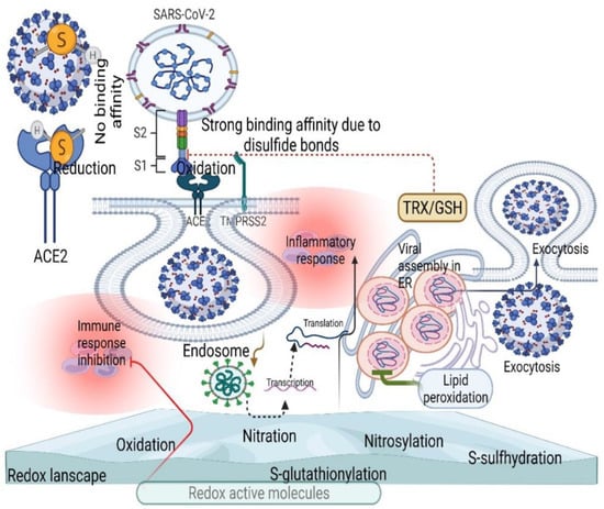 A small shift in the redox balance facilitates SARS-CoV-2 entry and further replication in the lungs. Entry of the virus induces an inflammatory response and increases the pro-oxidants to facilitate the host’s virus life cycle.