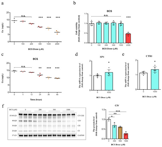 3.1. BCS Treatment Depleted Intracellular Copper Concentrations