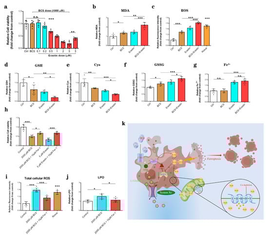 Bathocuproinedisulfonic acid (BCS) (B1125, Sigma, St. Louis, OH, USA) and ferrostatin-1 (Fer-1) (SML0583, Sigma, OH, USA) were purchased from Sigma-Aldrich. Erastin was purchased from Beyotime (SC0224, Beyotime, Shanghai, China). The graphical abstract was drawn by Figdraw (www.figdraw.com, accessed on 9 September 2022).