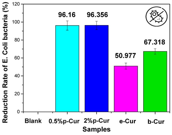 The reduction rate of investigated Cur emulsions against E. coli bacteria.