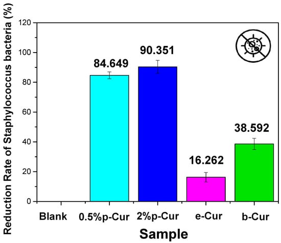 The reduction rate of investigated Cur emulsions against Staphylococcus bacteria.