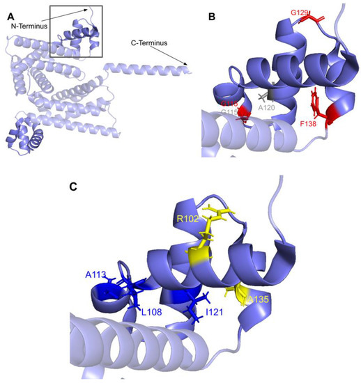 3.1.3. SNVs in the Membrane Interacting Hydrophobic Region