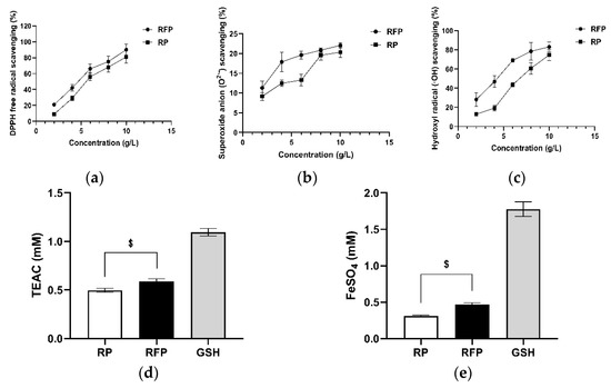 2.4. Determination of Antioxidant Capacity of RFP In Vitro