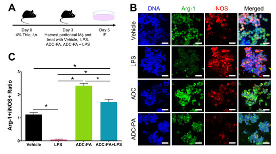 3.5. The Effect of ADC and ADC-PA on the Modulation of LPS-Induced Pro-Inflammatory Responses and Resolution of Inflammation-Associated Gene Expression in Murine Macrophages