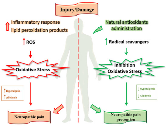 The pathways involved in developing neuropathic pain are complex, and numerous molecular and cellular mechanisms are involved. Oxidative species formation is critical for the onset of neuropathic pain and neurodegenerative diseases, including diabetes, cancer, premature aging, osteoarthritis, atherosclerosis, and Crohn’s disease [19].