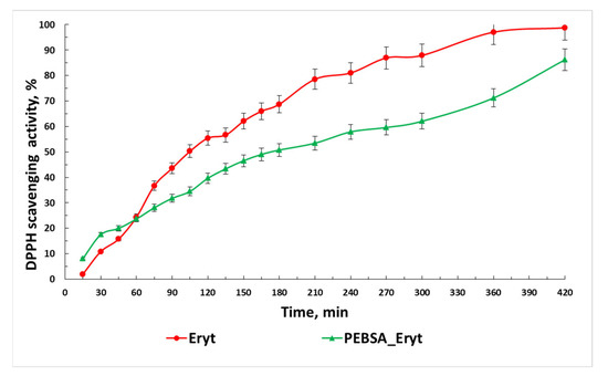 2.3.8. Antioxidant Behaviour of PEBSA–Eryt Bioactive Compound
