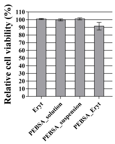2.3.9. Biocompatibility of PEBSA–Eryt Bioactive Compound