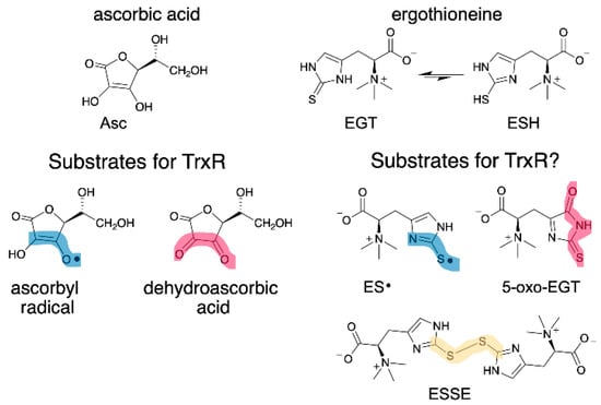 Jenny, K.A.; Mose, G.; Haupt, D.J.; Hondal, R.J. Oxidized Forms of Ergothioneine Are Substrates for Mammalian Thioredoxin Reductase. Antioxidants 2022, 11, 185. https://doi.org/10.3390/antiox11020185