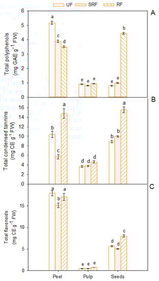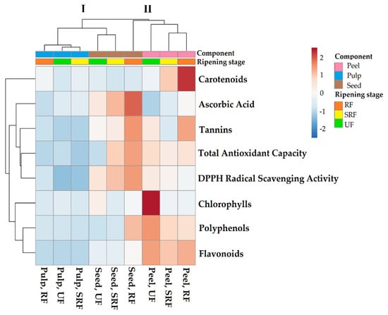3.5. Characterization of Phenolic Compounds in Peel and Seeds at Diverse Ripening Stages