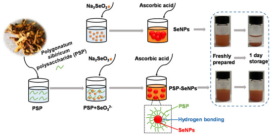 2.2. Preparation of SeNPs and PSP Stabilized SeNPs