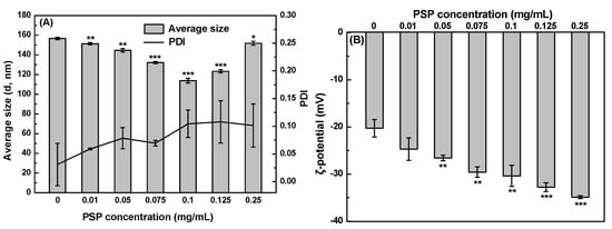 3.2. The Size and ζ-Potential Analysis of SeNPs and PSP-SeNPs