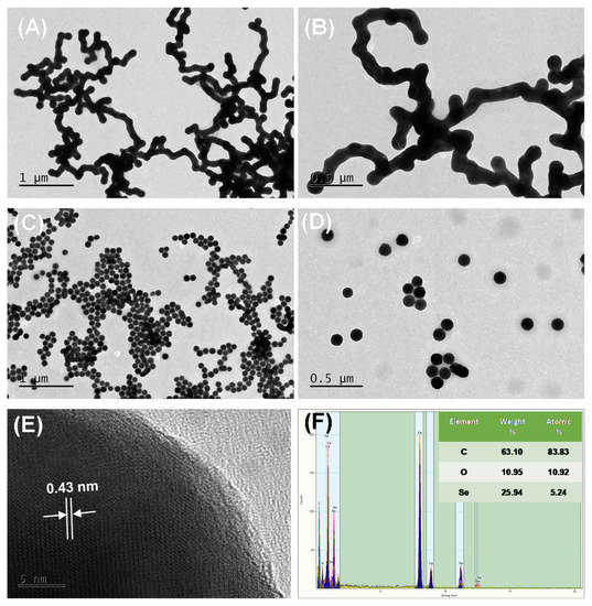 - Gao, X.; Li, X.; Mu, J.; Ho, C.-T.; Su, J.; Zhang, Y.; Lin, X.; Chen, Z.; Li, B.; Xie, Y. Preparation, physicochemical characterization, and anti-proliferation of selenium nanoparticles stabilized by Polyporus umbellatus polysaccharide. Int. J. Biol. Macromol. 2020, 152, 605–615. [Google Scholar] [CrossRef] [PubMed]