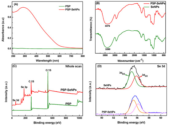 3.1. The Synthesis of SeNPs and PSP-SeNPs