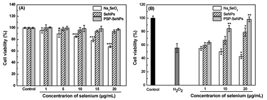 3.7. Effects of PSP-SeNPs on H2O2-Induced PC-12 Cells Toxicity