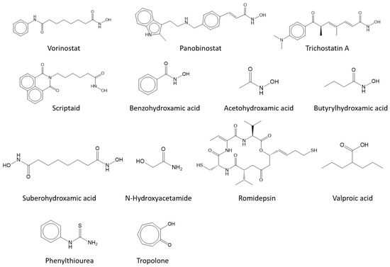 - Gottlicher, M.; Minucci, S.; Zhu, P.; Kramer, O.H.; Schimpf, A.; Giavara, S.; Sleeman, J.P.; Lo Coco, F.; Nervi, C.; Pelicci, P.G.; et al. Valproic acid defines a novel class of HDAC inhibitors inducing differentiation of transformed cells. EMBO J. 2001, 20, 6969–6978. [Google Scholar] [CrossRef] [PubMed] [Green Version]