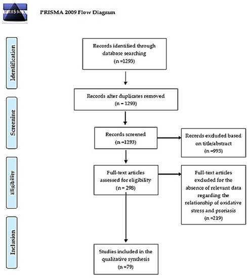 The flow diagram of the literature search process is reported in Figure 1. We detected a total of 1293 potentially eligible articles based on the aforementioned search strategy. Of these, after we removed the duplicates and the papers whose title and abstract did not correspond to the aim of this review (n = 995), 298 original articles were selected for full-text review. After we applied the inclusion and exclusion criteria, a total of 79 articles were included in the present systematic review.