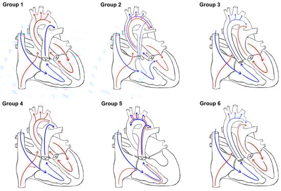 - Group 6: low oxygen with obstructed perfusion (TGA physiology without significant intracardiac shunt).