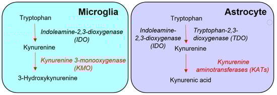 - Han, Q.; Cai, T.; Tagle, D.A.; Li, J. Structure, expression, and function of kynurenine aminotransferases in human and rodent brains. Cell Mol. Life Sci. 2010, 67, 353–368. [Google Scholar] [CrossRef] [PubMed] [Green Version]