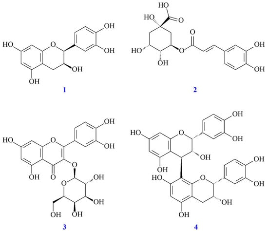 Chemical structures of epicatechin (1), chlorogenic acid (2), hyperoside (3), and procyanidin B2 (4) from C. pinnatifida.