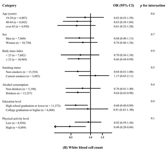 - Tamakoshi, K.; Toyoshima, H.; Yatsuya, H.; Matsushita, K.; Okamura, T.; Hayakawa, T. White blood cell count and risk of all-cause and cardiovascular mortality in nationwide sample of Japanese-results from the NIPPON DATA90. Circ. J. 2007, 71, 479–485. [Google Scholar] [CrossRef] [Green Version]