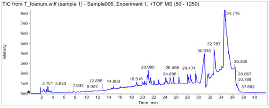 UHPLC-Q-TOF chromatogram of T. foenum.