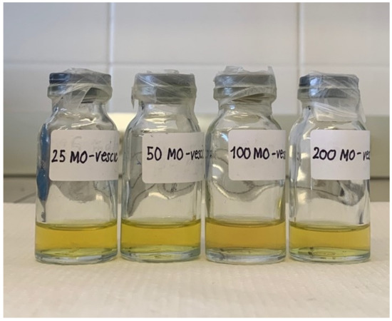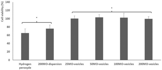 | 50MO-vesicles | * 119 ± 13 | 0.29 | −17 ± 3 | 100 ± 2 |