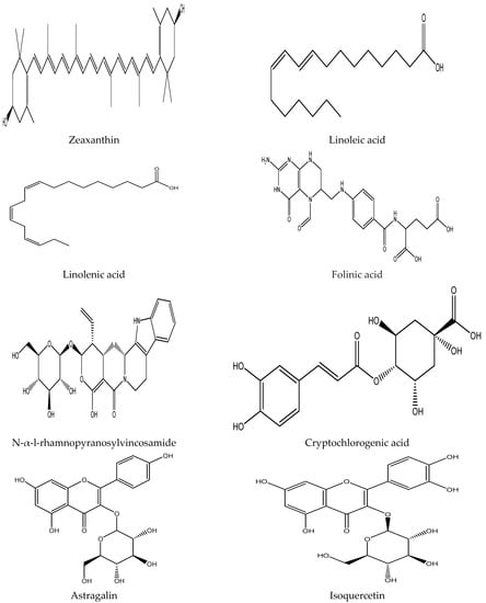 Chemical structure of some bioactive compounds presents in Moringa oleifera leaves.