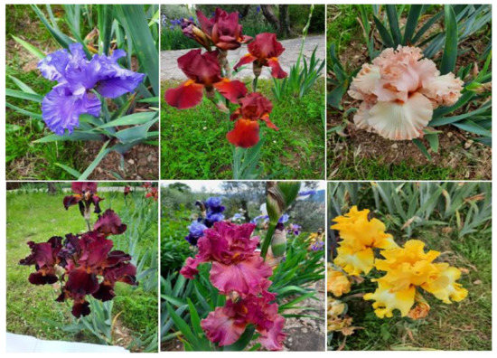 One such plant species is the Iris species (spp.) (Figure 1) (with 389 accepted species in the world according to (http://www.theplantlist.org/tpl1.1/search?q=Iris; accessed on 25 August 2021), a popular plant commonly used in landscaping due to its wide showy and colored flowers [5]. The plant draws its name from the Greek goddess of rainbows, referring to the wide range of bloom colors featured in Iris species [6]. The use of Iris species can be traced back to medieval painters and manuscript illuminators, by whom the plant’s flowers were used to obtain “Iris green” and “Iris blue” pigments [7]. Likewise, the rhizomes of the plant were blended with other herbs, such as hyssop (Hyssopus officinalis), and used to treat skin conditions, whereas, during the nineteenth century, they were utilized to disguise tobacco smell and reduce bad-breath odors [7].
