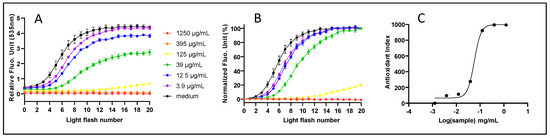 19]. As for the Nrf2/ARE assay, the AOP1 live-cell assay facilitates dose–response studies and has already been successful in classifying many plant extracts and standard antioxidant quenchers. These studies were undertaken based on the intracellular free-radical-neutralizing properties in HepG2 and other cell models [