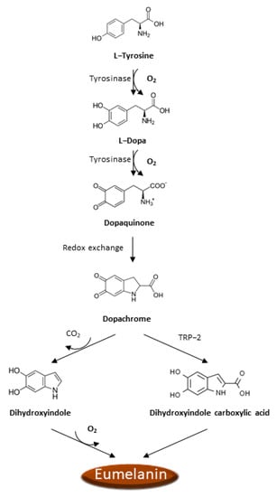 - Simon, J.D.; Peles, D.; Wakamatsu, K.; Ito, S. Current challenges in understanding melanogenesis: Bridging chemistry, biological control, morphology, and function. Pigment. Cell Melanoma Res. 2009, 22, 563–579. [Google Scholar] [CrossRef]