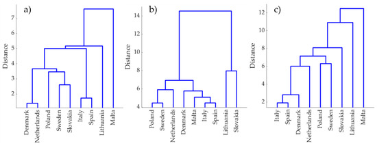 The clustering results revealed four groups of pollen samples before fermentation, cutting the dendrogram tree at 0.7 of maximum distance: Italy and Spain cluster, Denmark, Netherlands, Sweden, Slovakia and Poland cluster and Lithuania, with Malta forming two separate clusters.