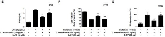 3.5. Effects of L. maackianus Extract on Glutamate-Induced Oxidative Stress in HT22 Cells