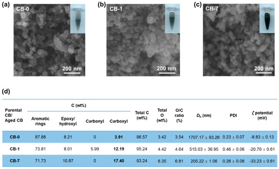 The CB particles were named as CB-0 (pristine CB), CB-1 (ageing for 1 day), and CB-7 (ageing for 7 days), respectively, depending on how long they were exposed to ozone.