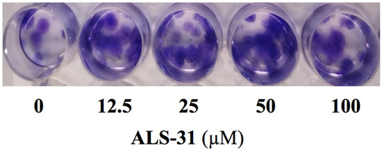 Effect of ALS-31 on the colony formation of fibroblast cell line BJ-5ta. Cells were treated with vehicle alone or the indicated concentration of ALS-31. After 10 days treatment, plates were photographed and images of representative experiments are shown. Other details are as indicated in the Materials and Methods section.