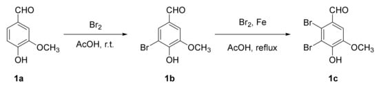 2.2. Synthesis of 2,3-Dibromo-4-hydroxy-5-methoxybenzaldehyde (1c)