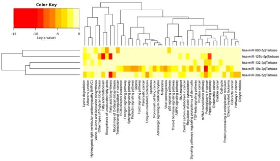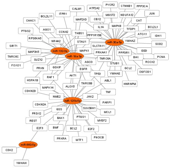 3.2. Functional Enrichment Analysis of DE miRNAs