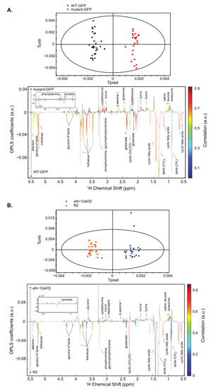 - Blaise, B.J.; Giacomotto, J.; Elena, B.; Dumas, M.-E.; Toulhoat, P.; Ségalat, L.; Emsley, L. Metabotyping of Caenorhabditis Elegans Reveals Latent Phenotypes. Proc. Natl. Acad. Sci. USA 2007, 104, 19808–19812. [Google Scholar] [CrossRef]