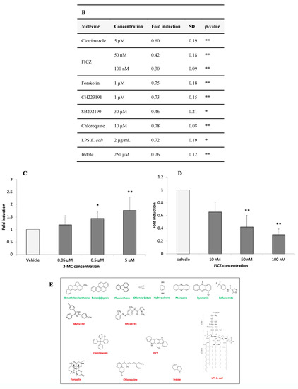 3.2. Identification of AHR-1 Activity and Modulators In Vitro in Cos-7 Cells
