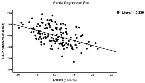 Partial regression of temporal lobe epilepsy—psychopathology phenome score on the index of antioxidant defenses (ANTIOX).
