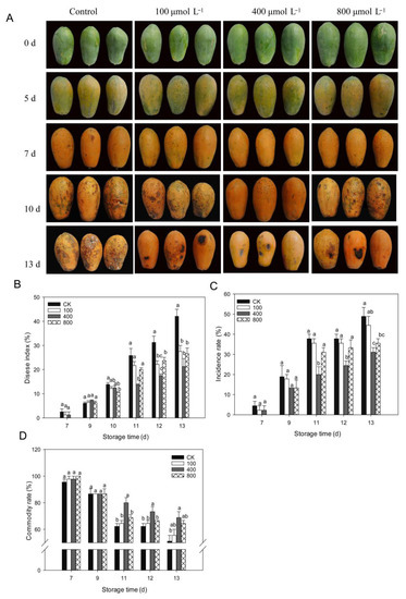 The incidence of disease was estimated by dividing the number of diseased fruits by the total number of fruits.