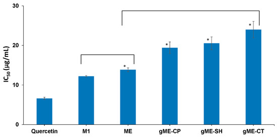 The samples concentration providing 50% inhibition of free radicals (IC50) was calculated and are represented in Figure 4. A lower value for IC50 is consistent with greater antioxidant activity.