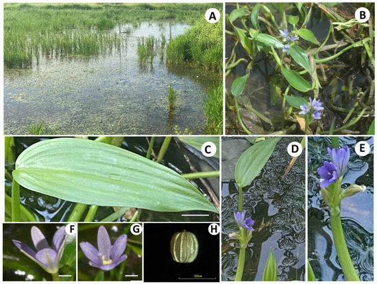 - Yang, Y.P. Pontederiaceae. In Flora of Taiwan; Liu, T.S., Huang, T.C., Koyama, T., Devol, C.E., Eds.; Epoch Publ. Co. Ltd.: Taipei, Taiwan, 1976; pp. 138–140. [Google Scholar]
