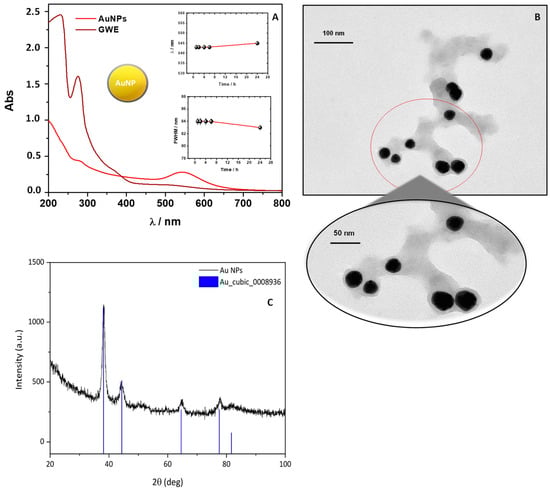 - Krishnaswamy, K.; Vali, H.; Orsat, V. Value-adding to grape waste: Green synthesis of gold nanoparticles. J. Food Eng. 2014, 142, 210–220. [Google Scholar] [CrossRef]