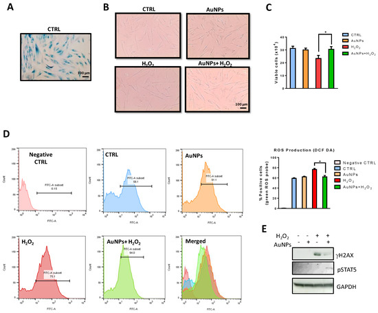 3.8. AuNPs Inhibit H2O2-Induced Oxidative Stress in NHDFs