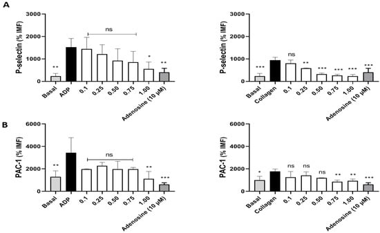 The data obtained are presented as the mean ± standard error of the mean (SEM) of the individual experiments and analysed using Prism 6.0 software (GraphPad Inc., San Diego CA, USA). Platelet-inhibition results were analysed by ANOVA and Tukey’s post hoc test to determine significant differences between samples [29].